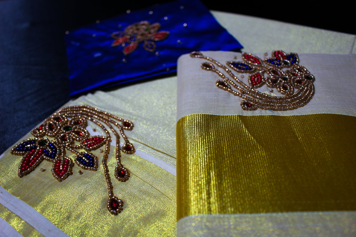 3 piece sets with blouse, saree and shawl